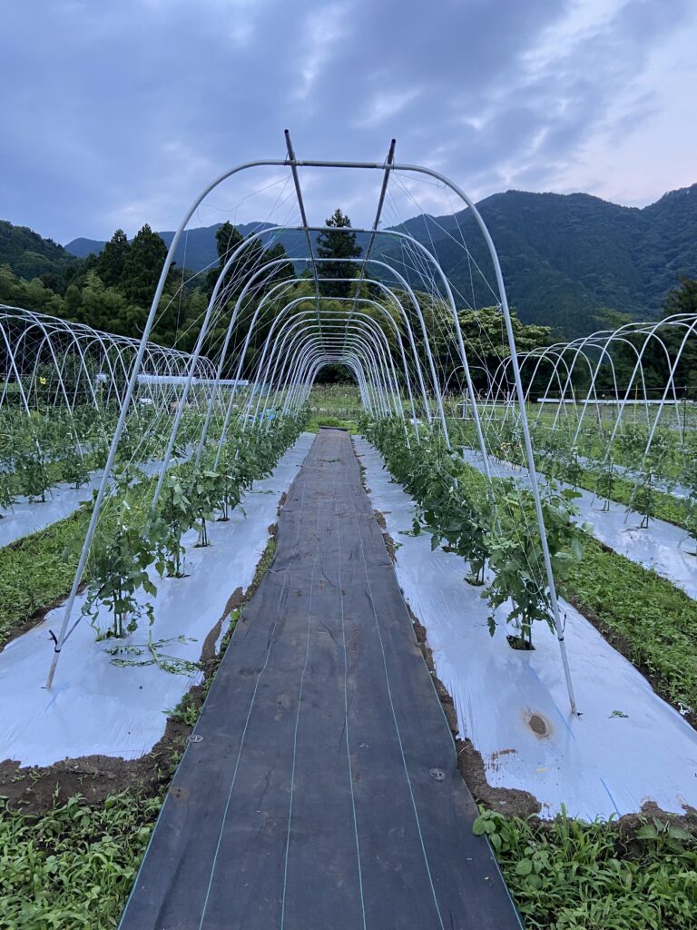 直売&販売 農作業日誌 20250613 露地農家はお天気次第。梅雨時は晴れ間に仕事が集中します。雨の日はハウスで種まきや普段できない片付け、玉ねぎの宙吊りなどの地味な仕事をコツコツとやります。 今日は貴重な晴れ。とうもろこしに稼働を取られて放置気味のトマトの支柱を立てます。 支柱立ては4シーズン目です。経験の積み重ねか、上手くなったね。18m、きゅうりネット... 2025年6月13日 bunsen@bunsen