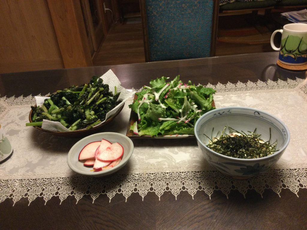 家庭菜園 田舎暮らし 食卓 20201207 2020年12月8日 2020年12月8日 bunsen@bunsen 大根の葉を2から3センチに刻みそのまま油で素揚げ、小麦粉も片栗粉もつけない。それにちょっと塩を振り食す。これがめちゃくちゃ美味い。苦味があり、ビールにあう。 それから、山芋のすりおろし、レタスとカブの酢漬け。どれも美味い。 Facebook postはてブLINEPocketFeedly