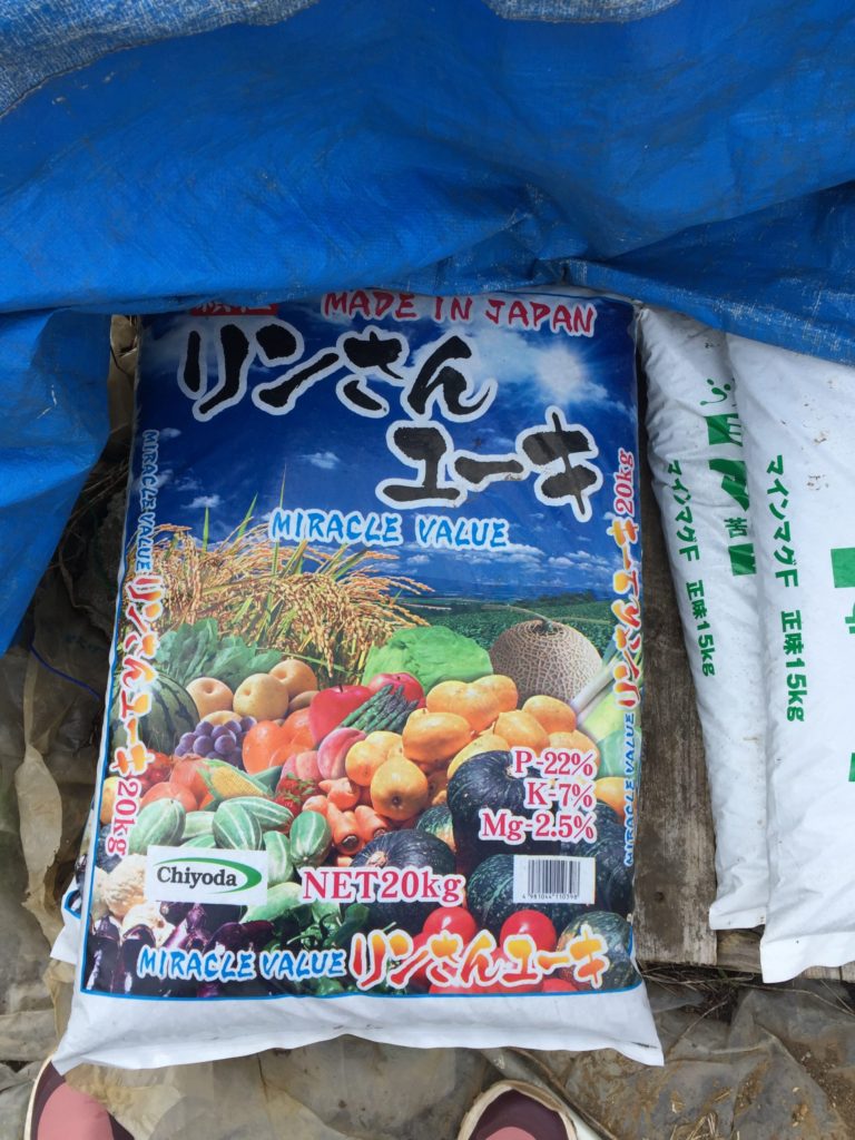 午後は、トマトのハウスに肥料をまきました。3時間、数種類の肥料をまいて、キラエースを5袋、有機配合肥料2袋、マインマグFを1袋、リンさんユーキを1袋、コーラル2袋、まきました。