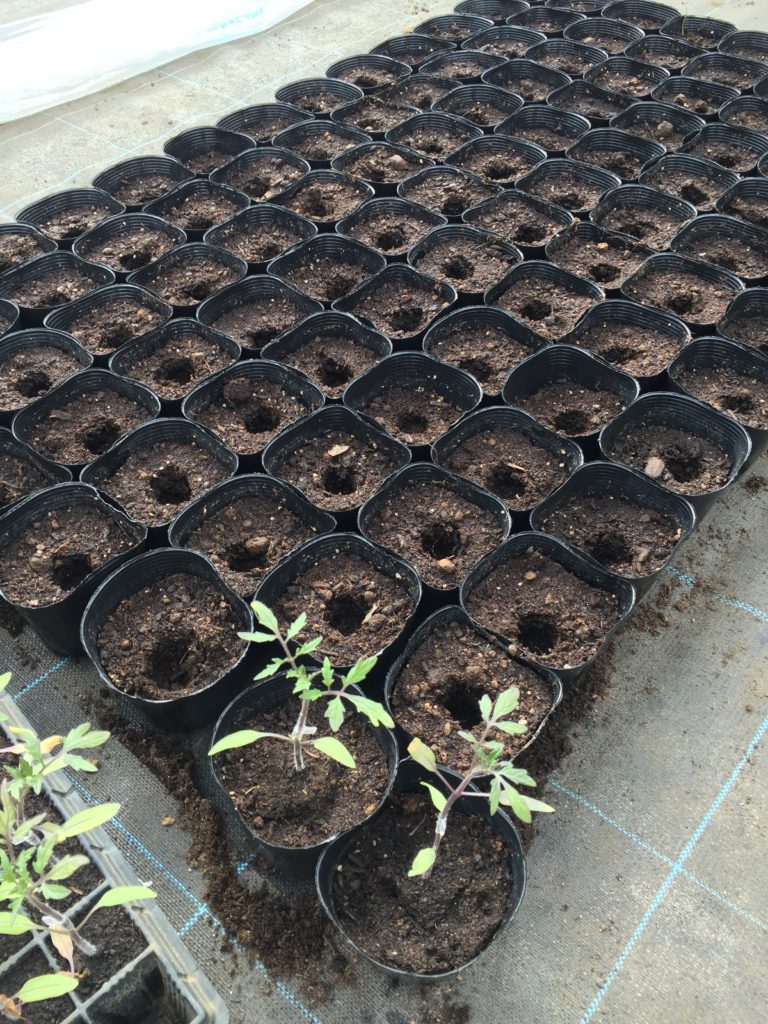 午前中は、トマトの苗を128穴セルトレイからポットに植え替えました。注意点としてはポットと土の間に隙間があかないようにすることです。隙間があるとそこに水が流れて行ってしまうからです。その作業のあと、市民農園さんにご挨拶に行きました。そこのトイレを使わしてもらうことになりました。
