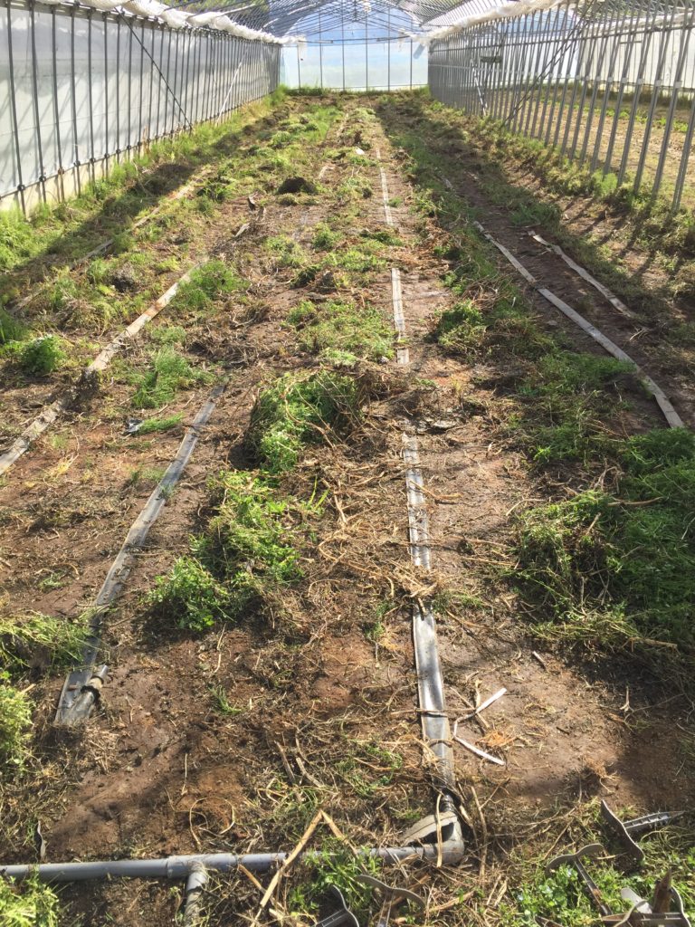 午後は、青根のハウスの中のマルチはがし。マルチを抑えるプラスチックのトンボを50個以上は外しました。農家さんの仕事でマルチはがしは嫌な仕事ナンバーワンと聞いたことがありますが実感しました。菜園では3分で終わります。写真は外した後です。