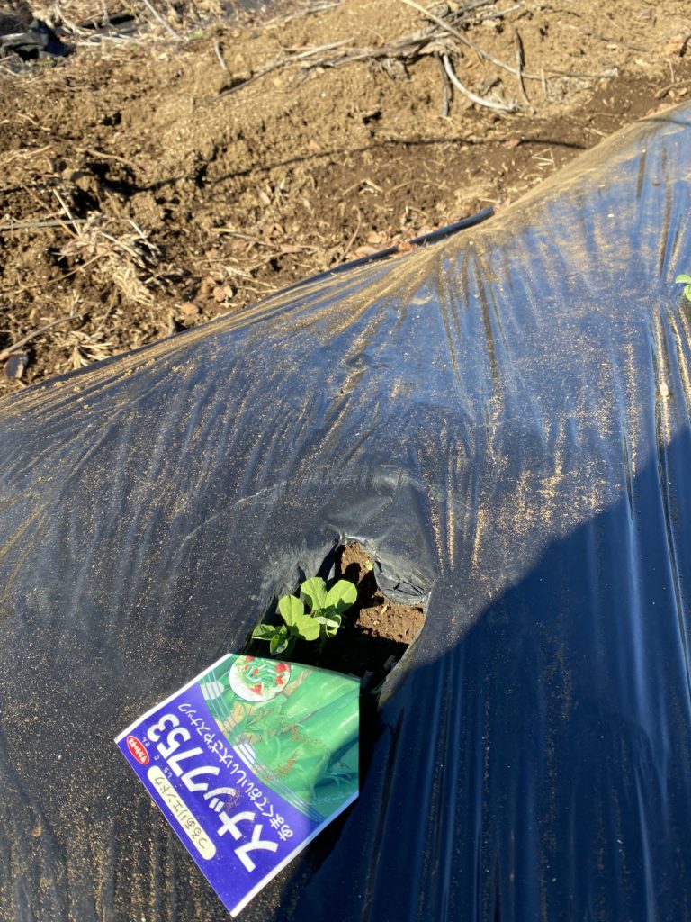 まずはそら豆の定植です。育苗に失敗して小苗です。もみ殻をを株元に置き保温を期待します。スナップエンドウもそら豆も寒い冬を越えさせないと味が良くなりません。上手く育つと良いのですが。