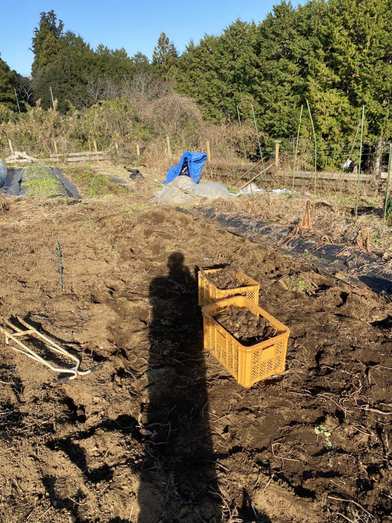 それから里芋掘り。収穫箱2箱に満杯になったので、保存用を土中に穴を掘り、籾殻で覆い里芋を埋めます。コンテナ3個分は埋めました。当分、里芋には困りません。欲しい方はご連絡ください。厳選してお送りします。