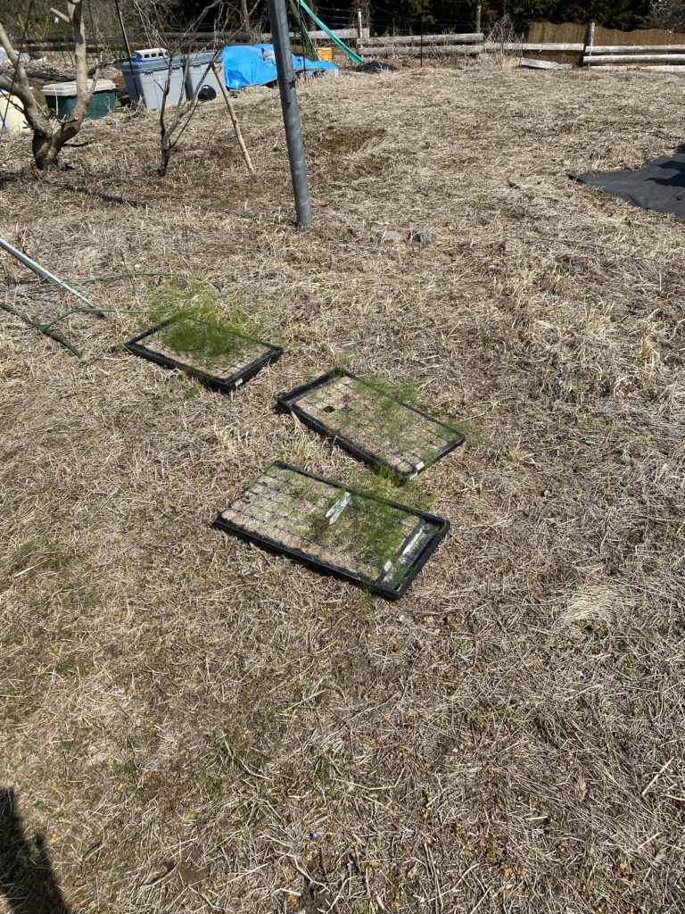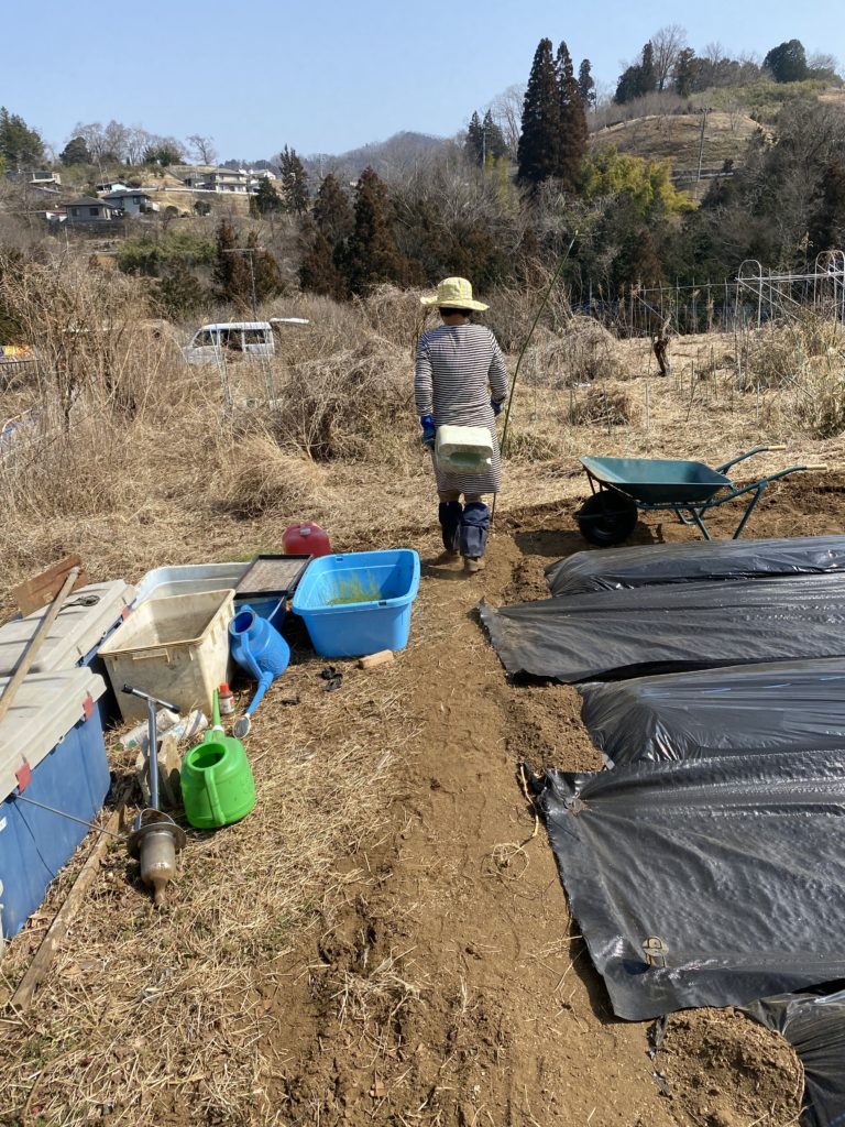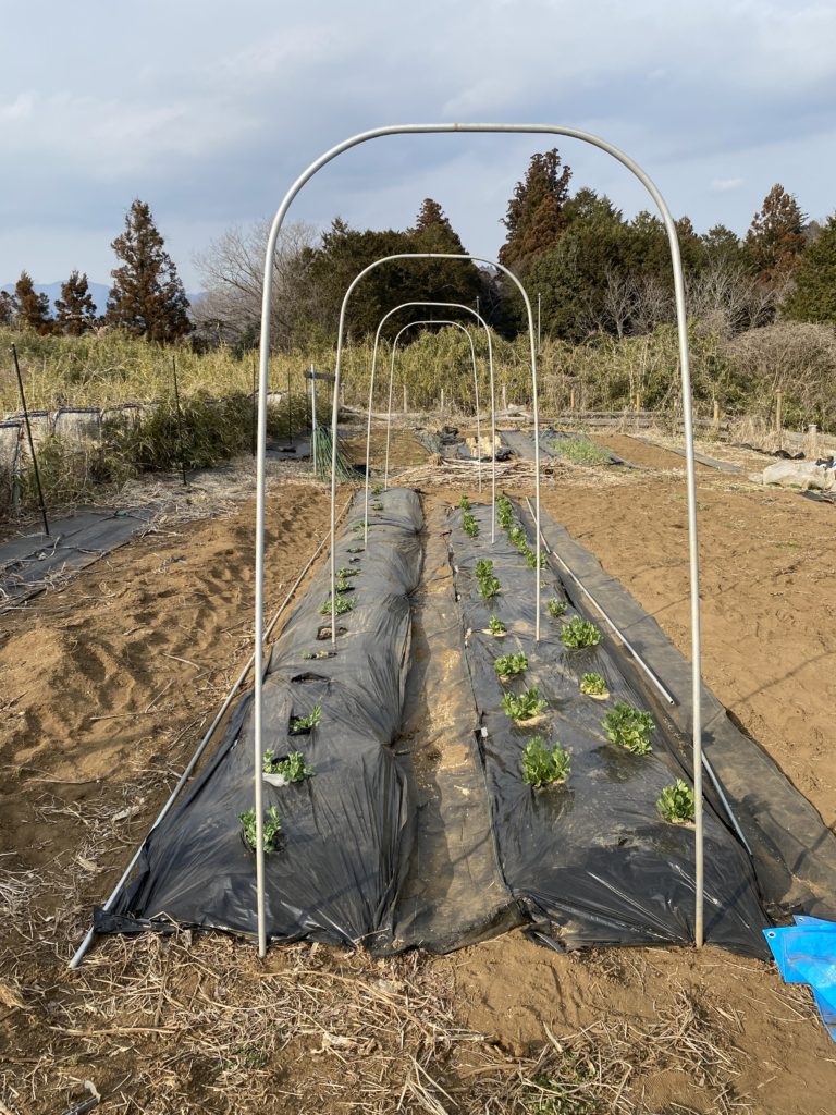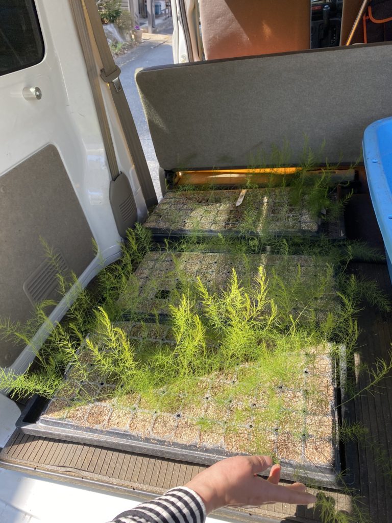 12月中旬に播種し12月31日に出芽したアスパラ君は、いよいよ畑デビューです。ヒョロヒョロで頼りないですががんばれー。