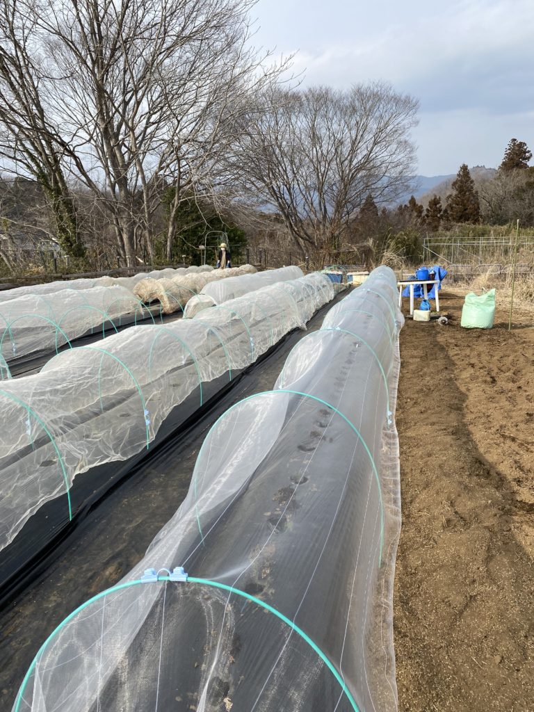虫除けの網ですが、シカくんに苗を食べられないように、覆います。