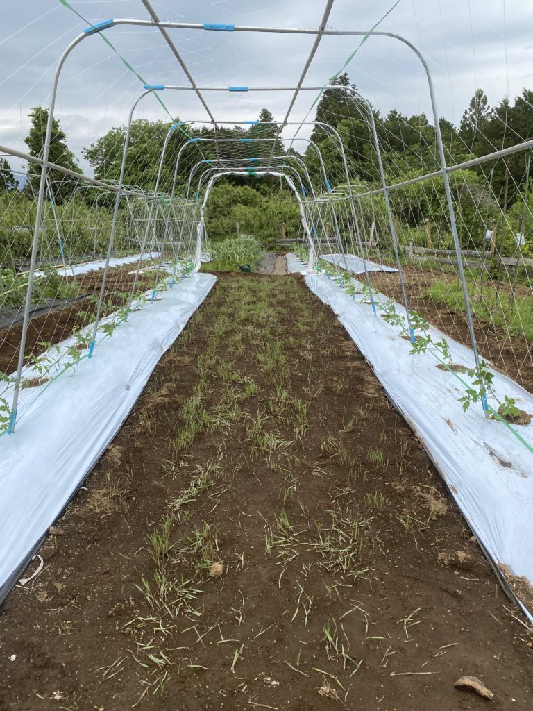 60歳からの起農 田舎暮らし ミニトマトの定植 20220515 2022年5月19日 2022年5月19日 bunsen@bunsen ミニトマトのソバージュ栽培。アイコ、ロッソナポリタン、サンマルチーノ、ほれ丸、ピンキー、トスカーナバイレット、みどりちゃん、濃甘。8種類、50本定植です。うまく収穫できたら、初めての出荷も期待できます。朝早くに畑に出て、昼飯も忘れて、気がつけば4時。シャリバテです。 Facebook postはてブLINEPocketFeedly
