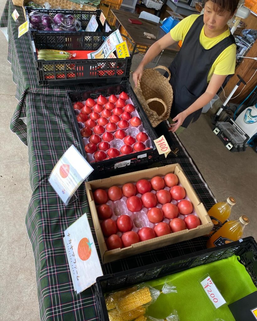 Ryoko が育てたトマトの出荷先であるファームドゥあざみ野に出かけました。トマト、ミニトマトだけでも15軒ほどの農家さんが出荷していて、どれも新鮮で安い。トマトでは吉見農園が最も大きなスペースをとっていて、しかもコーナーの一番目立つところです。お店が主力商品としていることが分かります。しばらく見ていたら、他のトマトを全く見ようともせずに、吉見農園のトマトばかり3袋買う主婦も、吉見さんのトマトばかりどんどん売れていきます。美味しいと知っているようです。箱で買っていく人も。 佐藤さん家のやさいもここに並べてもらえるのですが、こんな厳しい競争の中で選んでもらえるのか、ビビります。まずは、鹿に食われないようにしないと。まだ3粒しか取れてません。厳しい。帰りの車中はRyokoと沈黙が続きました。それにしても吉見さんのトマトは凄い。爆売れだった。