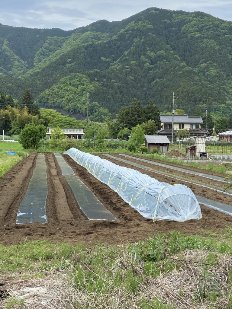 牧野により、アスパラの支柱を片付けて、牧野中の少し残った玉ねぎの雑草を取り、トマト支柱10セットを軽バンに乗せて青野原に、青野原では、直売所圃場で苗に水やりと防虫ネットかけ、テント圃場できゅうりの定植、そして、小屋圃場でトウモロコシの定植と種まき、種まき部分はトンネルかけしました。 その時点で1730、疲労困憊。テント圃場に戻り、農具の片付けをして、藤野宅に帰ります。