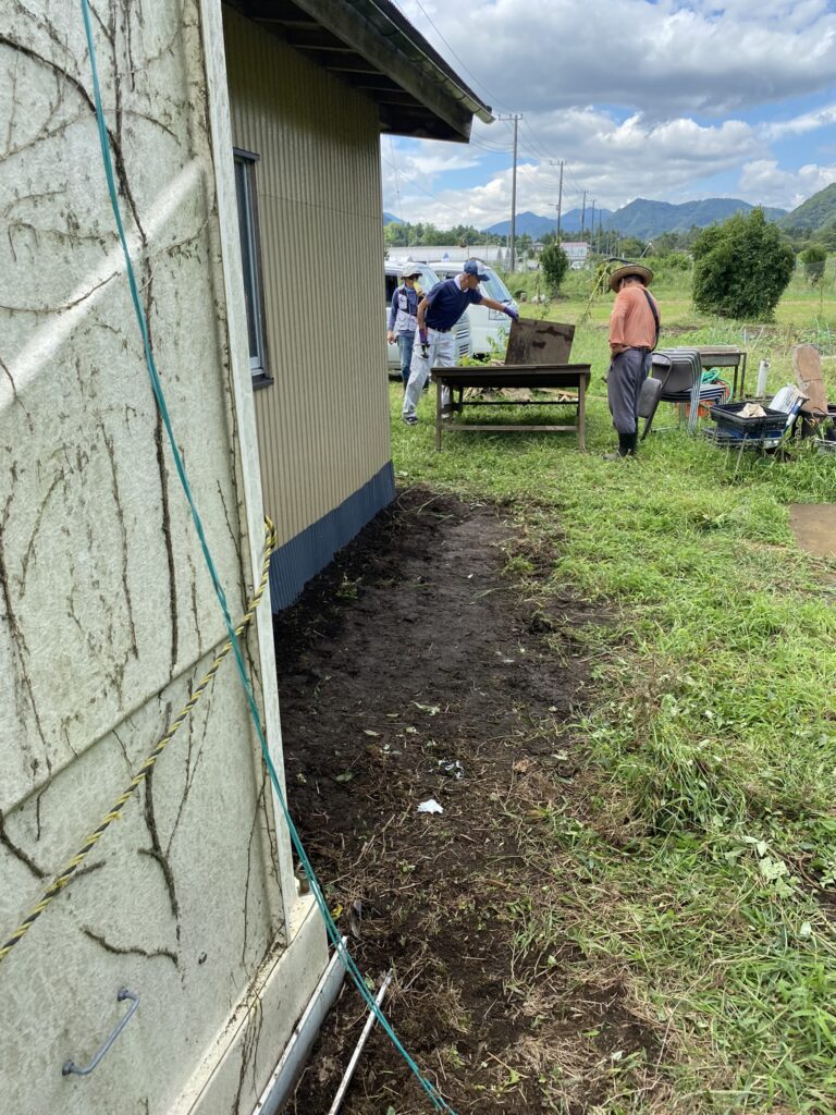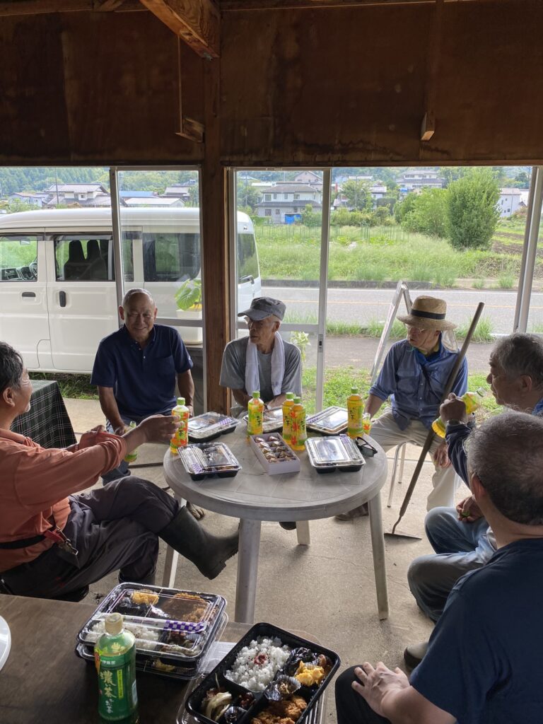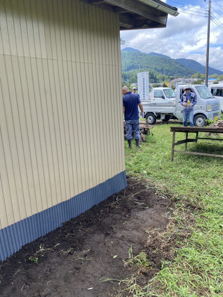 直売所の裏側に通風のための隙間があり、小動物が入る可能性のあることから、組合長がお声かけして、組合員の方が補修に来てくださいました。体調がすぐれないのをおして参加された方もいて、最後に弁当をいただきました。玉ねぎの植え付けはもう済んだか、白菜の苗をバッタに食われたとか。組合長が、こうして直売所が復興した以上は、11月を目途にみんななんか持ち寄れ。と、檄。I様の丁寧だけど、今日はこの一言は言いたい、決意を感じるご発言でした。