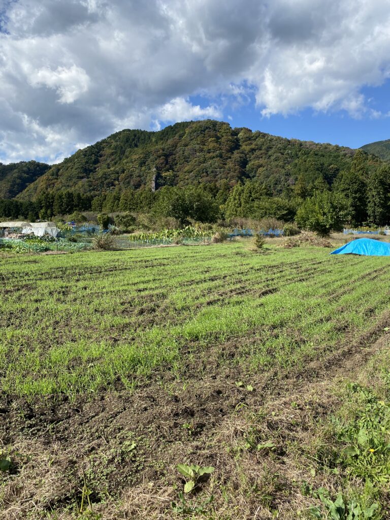 1枚目の写真は、新しくお借りした9畝の畑です。畝は せ と読んで、10メートル四方程度の大きさになります。農家さんは、畝、それが10個で1反、1反が10個で1町と呼び、住宅の6畳とかと同じように大きさのイメージが付きます。1畝は30坪程度だから9畝は小さい家なら9軒は建つ感じになります。周囲は宅地で獣害が少なそうなので、とうもろこしを栽培予定です。今は、ライ麦を撒いて来春に備えます。