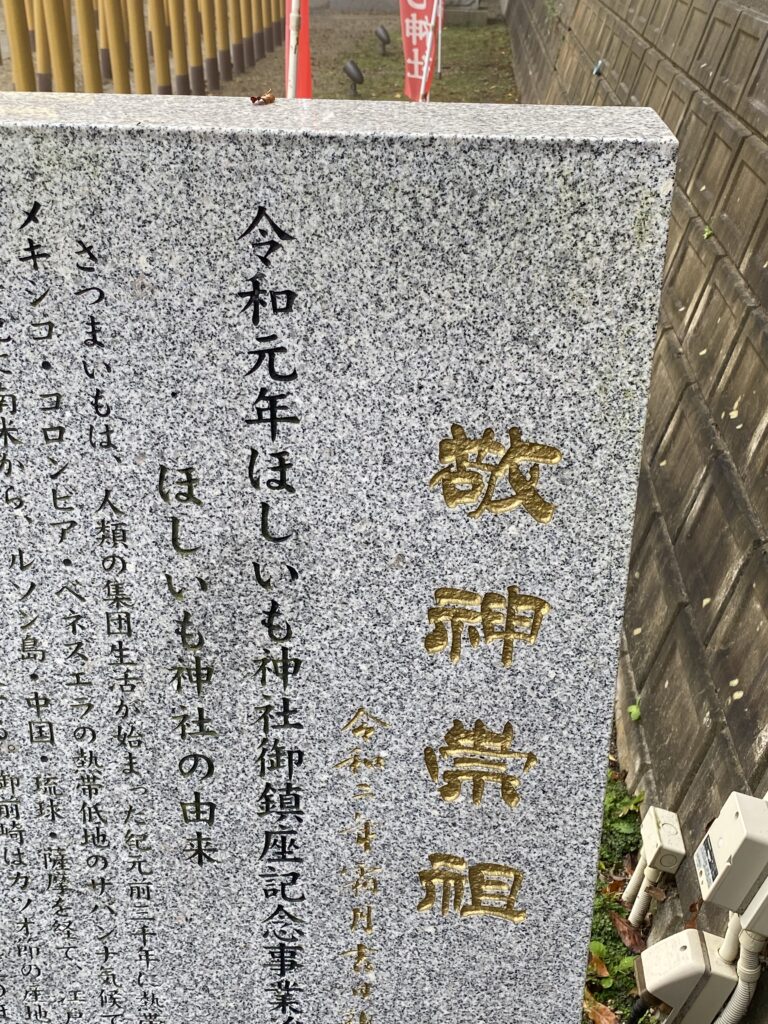 行く途中、干し芋神社発見!メッカともなると神社まである。気のせいか願掛けも干し芋のような。令和元年に建立されたらしい。
