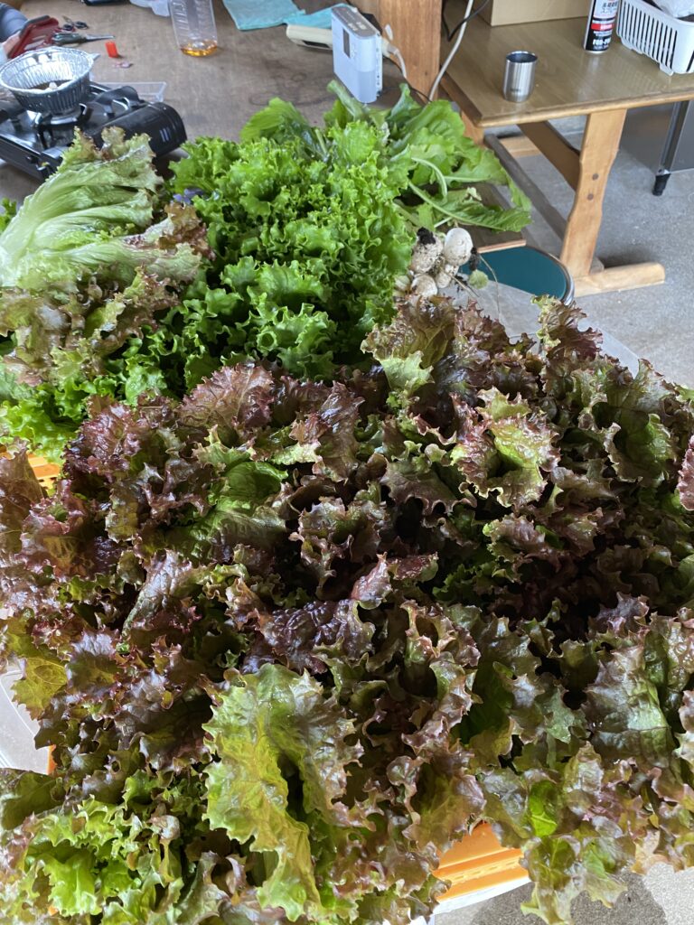 暑い日が続き、本来なら消える虫たちがまだ活躍中。収穫したサニーレタスの根元にアブラムシがポツン、ポツンと付いてます。農薬を使えば防げます。しかし、使いたくない。防虫ネットで頑張ってきたのですが残念です。洗って落とせば問題ないのですが。どうするか。頭をかかえます。