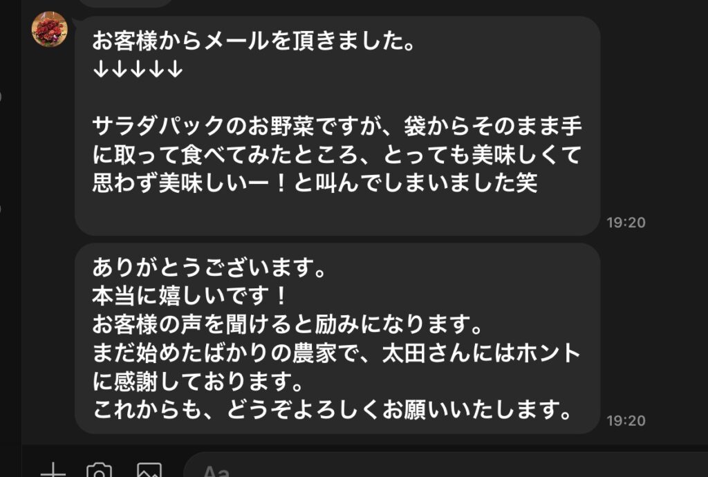 太田様は、私たちの直売所に品物を取りに来てくれて、そして、こんなことをおっしゃるのです。