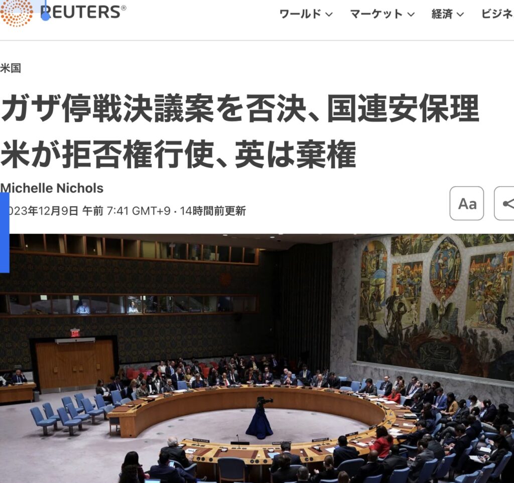 逆に前に、その違反を指摘した人は、残念なことになっているわけで、正義というのは、時と場合で非常にいい加減だな。ましてや会社という閉鎖的な組織では。などと考えていたら、ガザについて国連安保理の採決が示された。