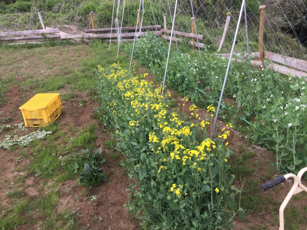 かき菜の花は菜の花とそっくりです。ダイコンの花も似てます。柔らかい葉の部分を摘んで食します。まだいけます。