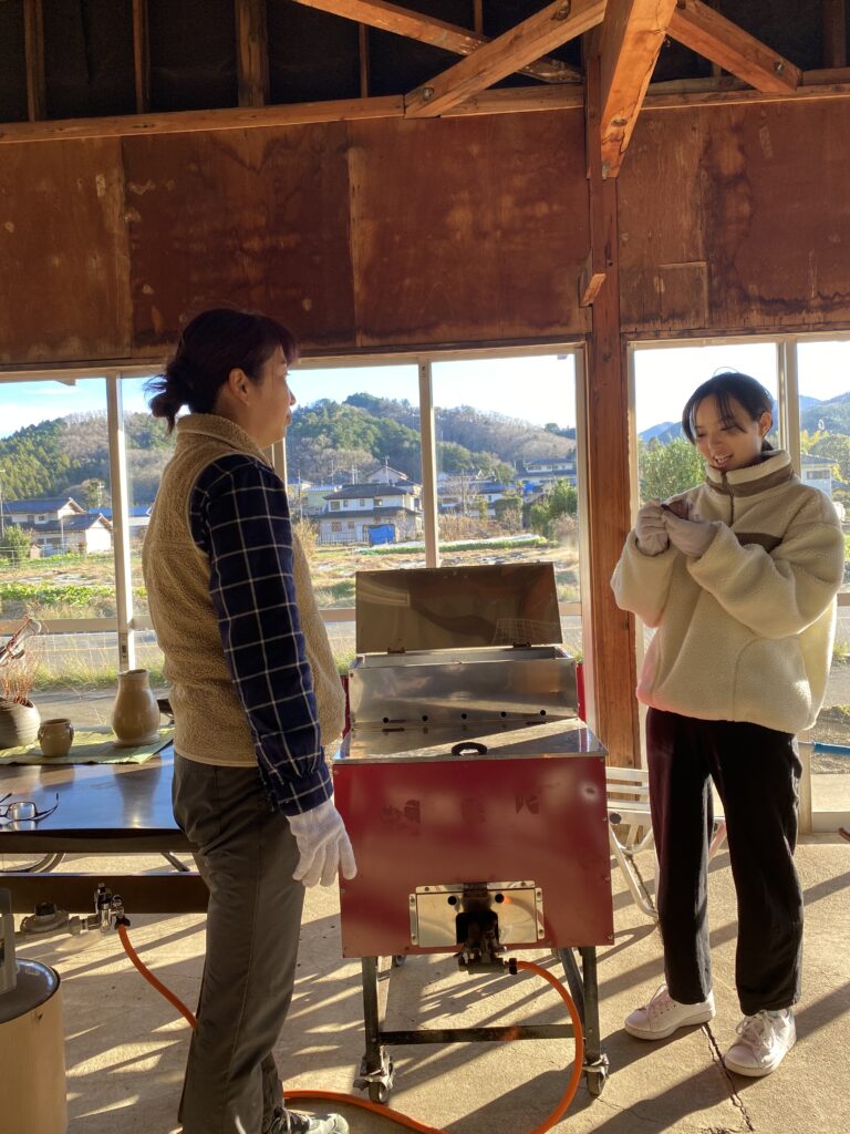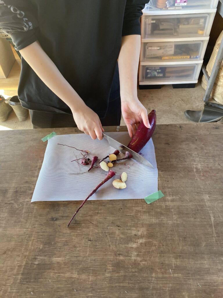 2ヶ月熟成させたさつまいも紅はるかを石焼き芋にします。ようやくボンベも手に入り試験焼きです。