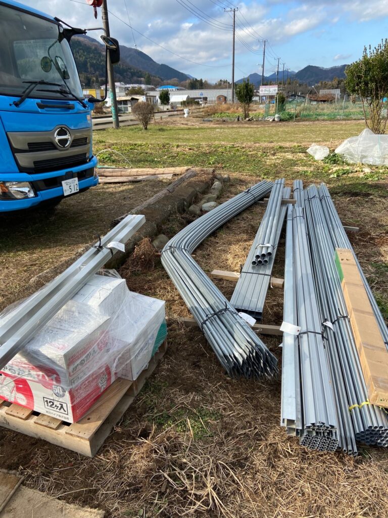 農作業日誌 育苗ハウス到着 20231228 2023年12月29日 2023年12月29日 bunsen@bunsen 育苗ハウスのキットが届きました。今までビニールトンネルで育苗したり、自宅の庭でビニールの囲いをつけて育苗していましたがこれからは広々。間口6m奥行17mの育苗ハウスとしては比較的大きいです。温度センサーの付いたサイド巻き上げ機と換気扇を装着します。自分達で組み立てますが怪我の無い様に気をつけてやっていきましょう。 Facebook postはてブLINEPocketFeedly