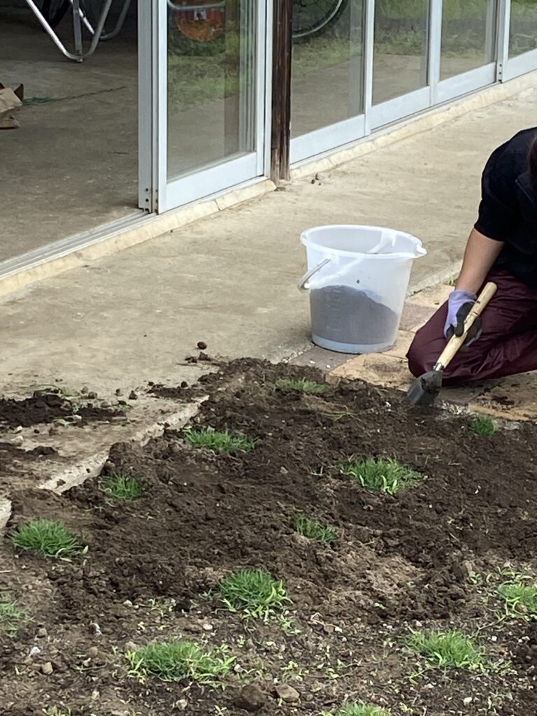 昨日は疲れてお休みモードでしたが休んでる場合じゃない。直売所の販売機も着荷間近。前の芝生は成長がイマイチで雑草を取り目土と肥料を入れてカツ。鯉のぼりのご家族さん、それから芝生君も、もうちょっと元気に頼みますよ。
