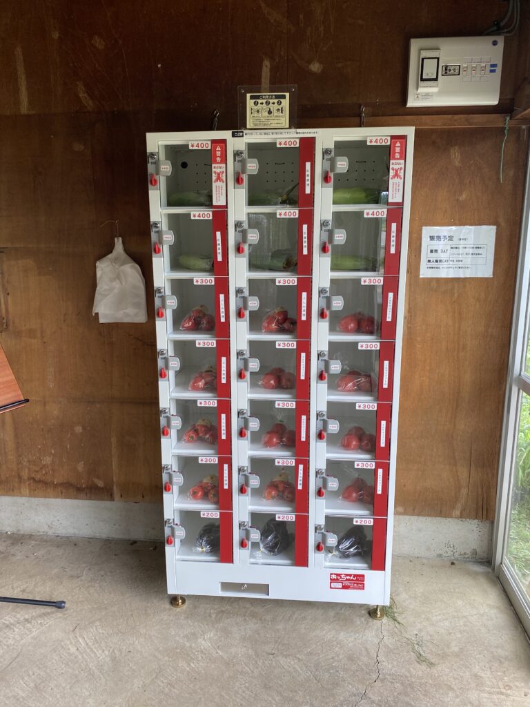 すると吉見さんが現れて、すみません、売れ残りを出してしまって、なんのなんの最初っからうまくは行かないよとにかく続けて、あそこに行けばとうもろこし、トマトが買えるという実績を作っていけば。農作業があるからいつも有人での販売はできないんだから、せっかく始めたんだから、とうもろこしもどんどんできるし、売っていかないと。明日もやるんでしょ?ちょっと、明日は、休憩して戦略を練り直そうかと。あそう、とにかく始まったばかりだし、自販機は他で実績があるのだから、継続が大事だと思うよ。