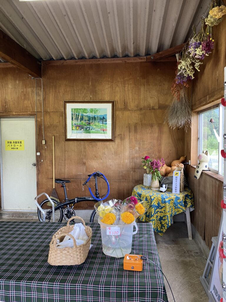 キャンピングカーでお立ち寄りのご家族、奥様が美しいので、お花をプレゼント。家族5人で楽しくご来店の娘さんがakarichan そっくりで、面白いし、明るくて、その棚の300円のとうもろこしは、入れるところがなくて、本当は400円なんだよ。えー、それじゃーこれと、ご家族で召し上がるなら、一番下段の虫喰われの部分を切ったやつ、それでも充分だよ、えー、それじゃー、それも。よしそしたら、もう一つ400円の棚を300円に間違えちゃおう!わー、ありがとう!鍵でロッカーを開けて合計800円です。今日はどこに行くの?家族で温泉!へー、そりゃ楽しそうだ。インスタのコードを撮って嵐のように去っていきました。