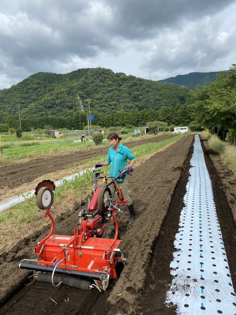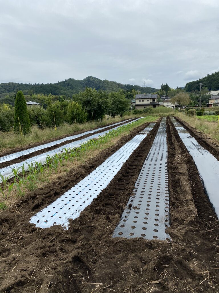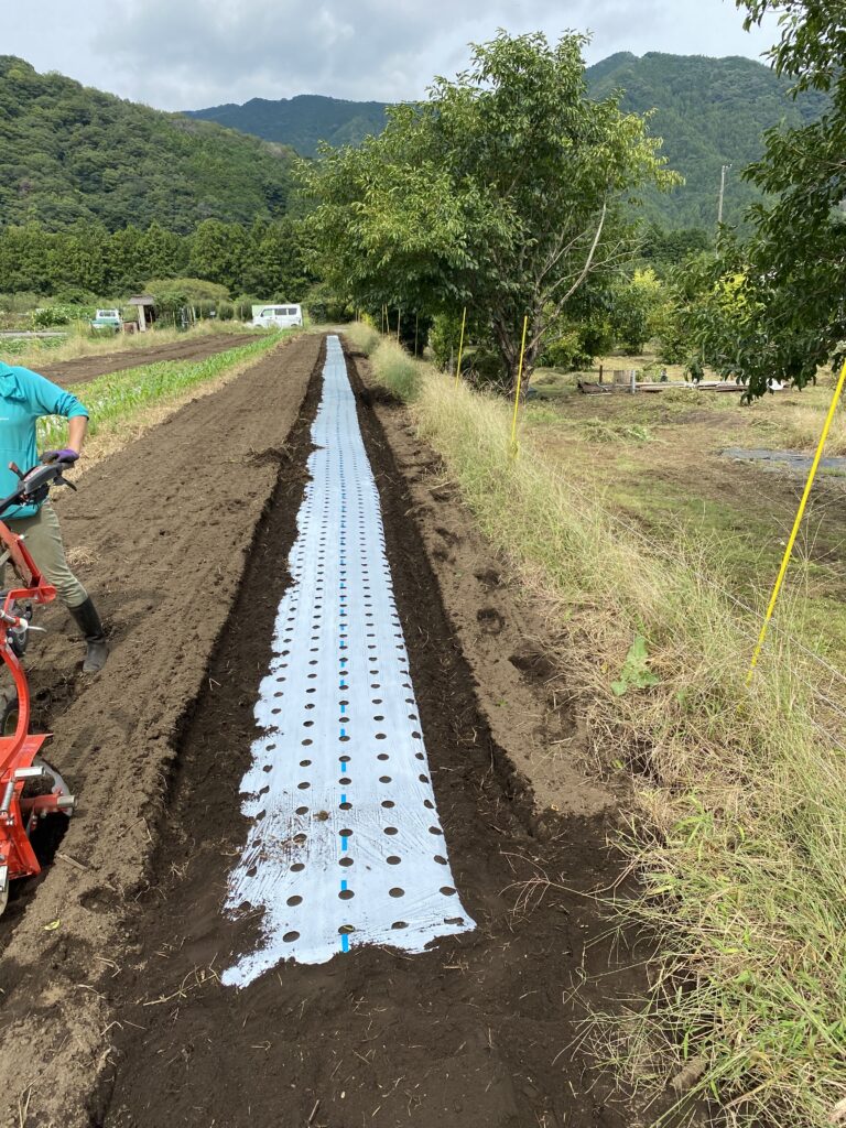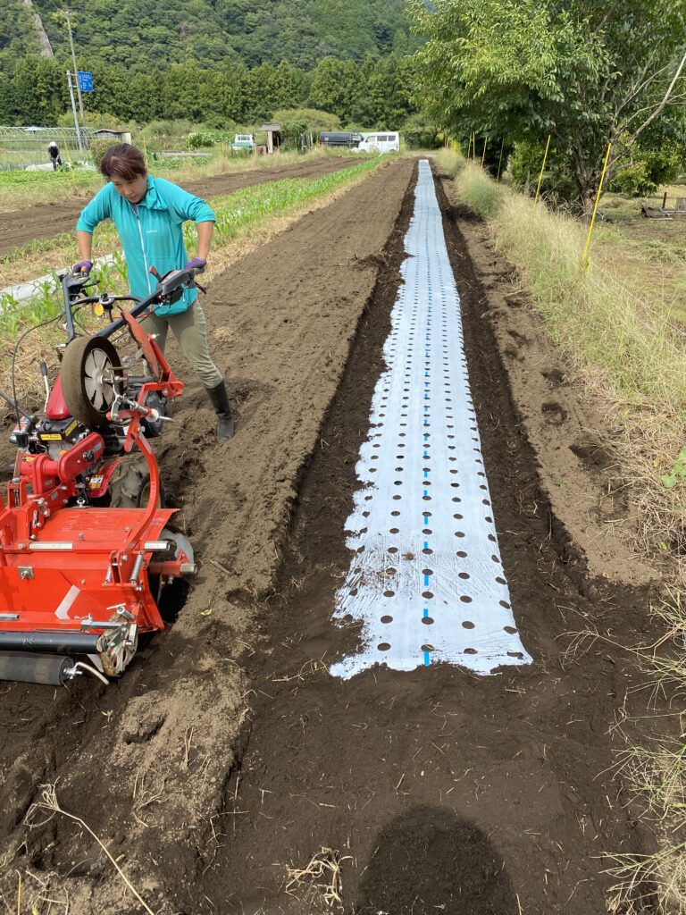 直売所のよこの畑には綺麗なイノシシの足跡。さてマルチャーを出して、レタス、白菜、ロメンレタス、カキナのベッドを作ります。農業資材を買いにコメリに行ったら、白菜の苗が128円で売られていて、bunbun めんどくさいから、苗で売っちゃおうか、去年、150円で売ってたわよね。どういうこと、苗から完成までの苦労が30円ということ?ふざけてるよね。
