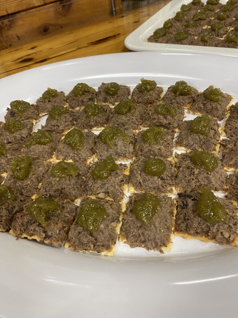 事情から紙皿、お箸でのお食事ですが、猪肉、鹿肉、サラダどれも秀逸です。そして、若いパテシエが地元の酒米で作ったケーキ、若いからと侮るなかれ、ミシュランで星をもらったレストランの専属パテシエだそうで、これまた最高級のお菓子です。