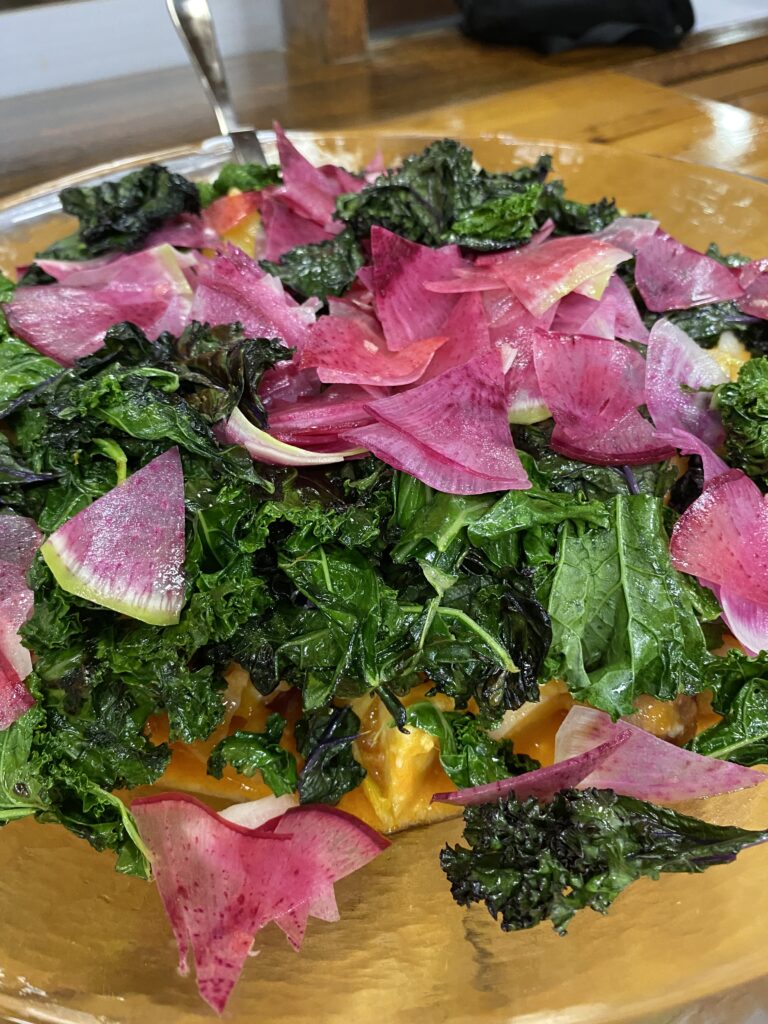何より自分たちの野菜がおいしくてびっくり!最後にシェフにご挨拶しました。ハーブミックスをこんなに美味しくしていただいてとても嬉しいです!シェフは、いやいや、何もしなくて、直に食べてそれだけで美味しかったです。