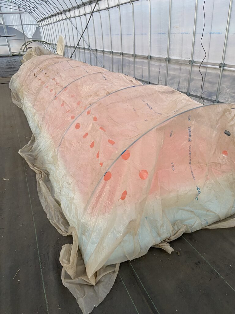 今年も電気カーペットでやると、Ryoko 社長が農家の先輩たちにお話ししたら、寂しげに、電気カーペットですか、、、。と言われたらしく、Bunsenに涙目で報告、確かに、育苗ハウスまで用意して電気カーペットはないだろうと、早速、中山ファーム様にご相談。中山さんは、丁寧に自分の設備の様子、こうした方が良いです、と、アドバイスしていただけました。