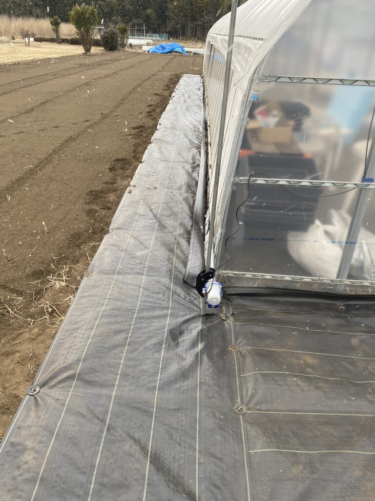 そして今年、育苗ハウスの床に断熱材を敷き、その上に農業用電気マット、センサーで通電をコントロール。更に、ハウスのサイドをこれまた温度センサーで自動開閉。更に、換気扇もセンサー管理。凄い!なんか農家っぽい!ただ、トンネルの保温はプチプチでやっぱり素人っぽい。
