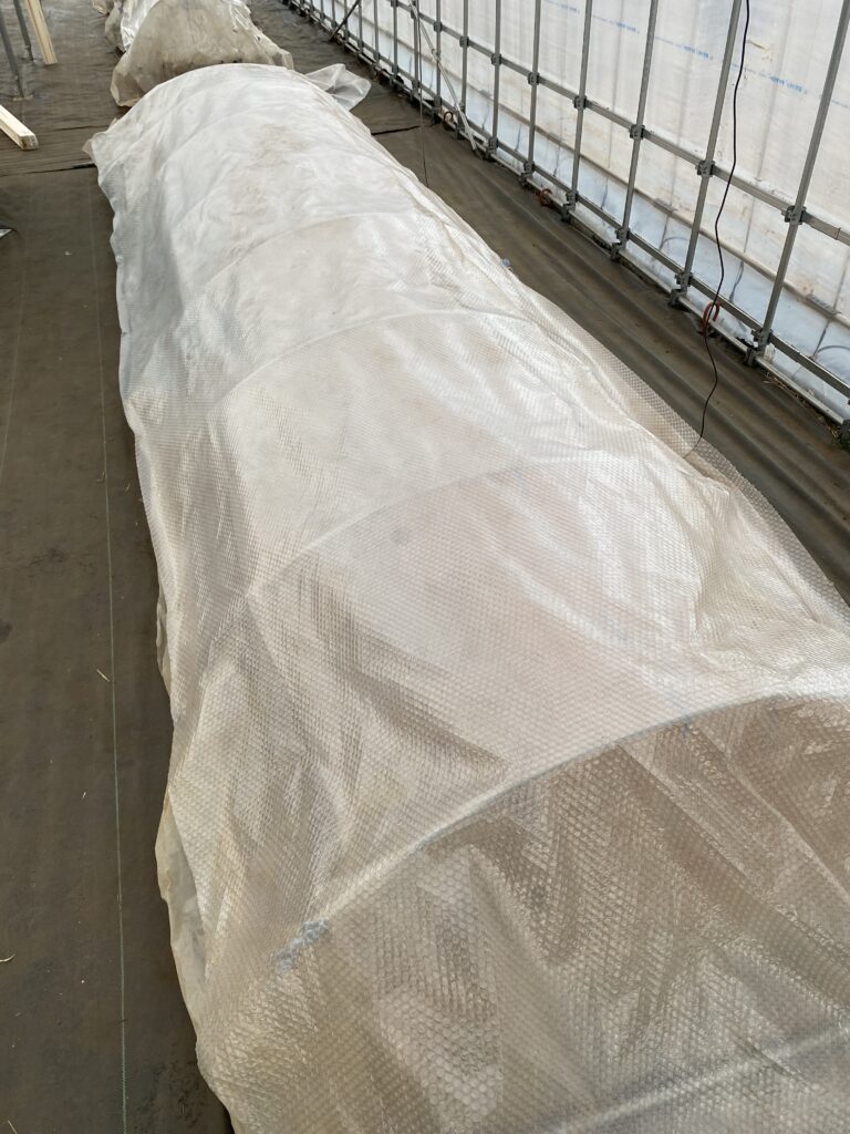 昨年、育苗ハウスの建設が遅々として進まず、直売所の中で頑張るもののトウモロコシの早期栽培は全滅、なんのための育苗ハウス?と、涙。