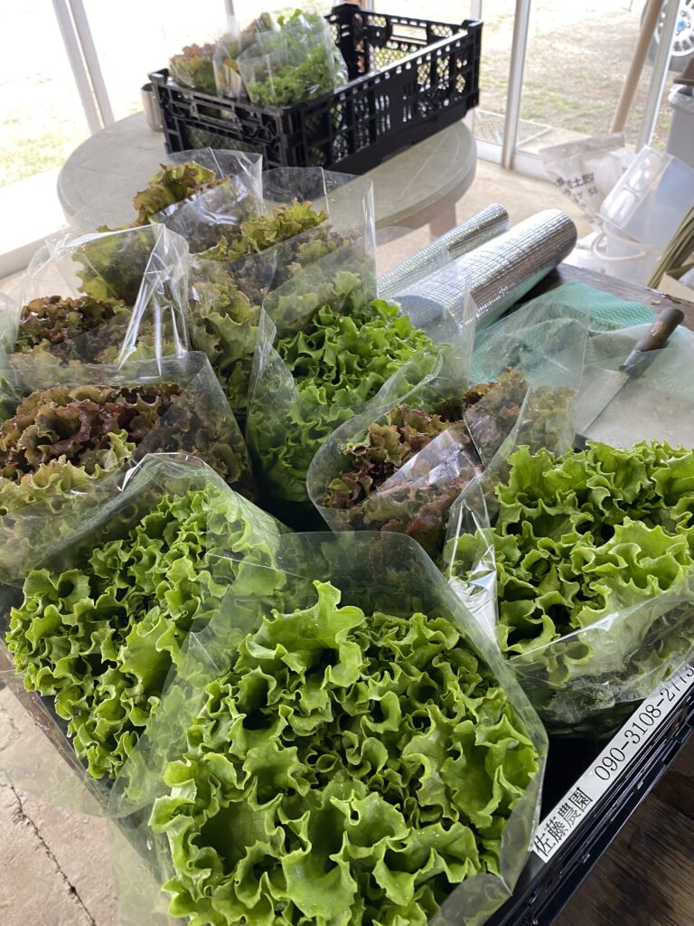 早朝の収穫が朝の水分を吸って一番美味しいレタスとなります。昨日、晩飯でレタスサラダを頂きましたが、柔らかく、それでいてシャキシャキ感もあって、マックの宣伝に出てきそうなレタスに仕上がっていて、Ryoko社長も自信を持ったようです。250円で売ってみようか。