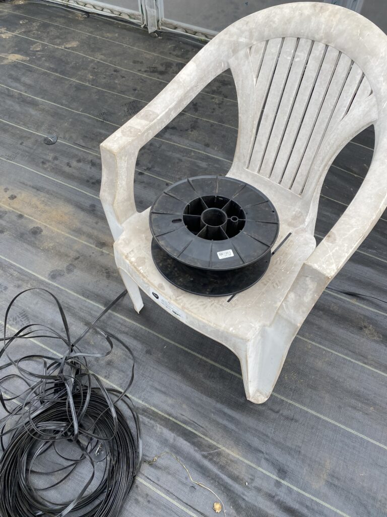 このマイカ線はビニールトンネルを抑えるのに使用しますが、昨日畑の中でコンガラカセテしまいました。何とか真っ直ぐにしようと悪戦苦闘も叶わず、ところどころハサミで切って結び直して使用しました。今日、巨大ボビンに巻き直します。