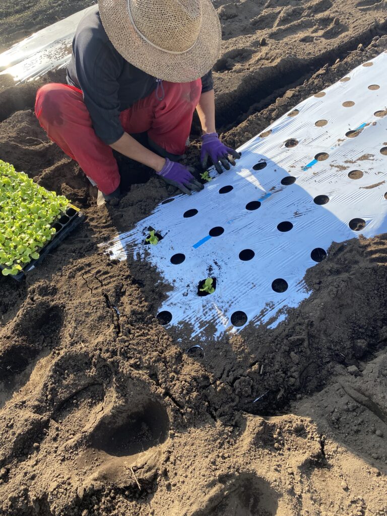日が暮れて、マルチの穴が見えなくなって来て、何とか完了です♪お疲れ様でした。