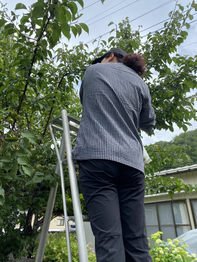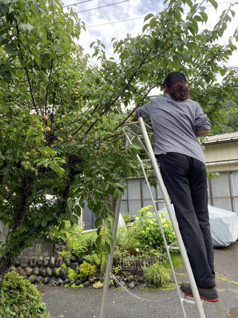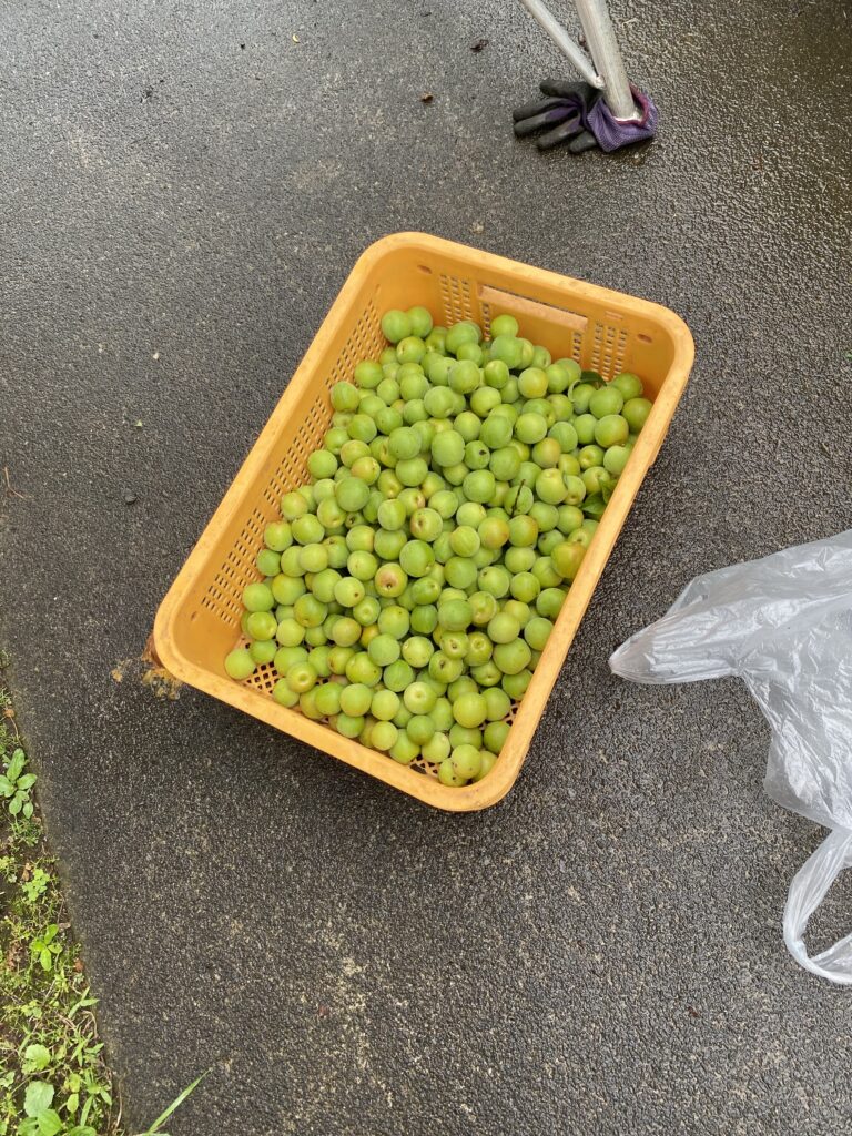 田舎暮らし 梅 20250611 2025年6月11日 2025年6月11日 bunsen@bunsen 藤野の玄関前には自生の梅の木があって、この梅の木のせいで家の前に車が停められない事態になっています。勝手に生えた反省からか3年に1回実を付けます。梅君はお礼のつもりでしょうが、道路に実が散らばってしまうので、やや迷惑気味です。 圃場からビニールハウス建設用の梯子を持って来て収穫します。コンテナ2杯分収穫できました。ヘタを取り一旦凍らせてそれからジャムを作る予定です。1年はジャムに困ることはなさそうです。 Ryoko直売所で売る?うーん、微妙! Facebook postはてブLINEPocketFeedly