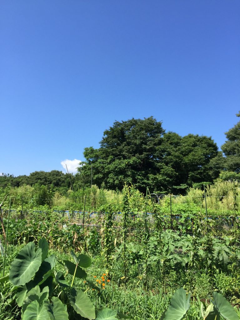 畑、朝、8時、でも暑い。