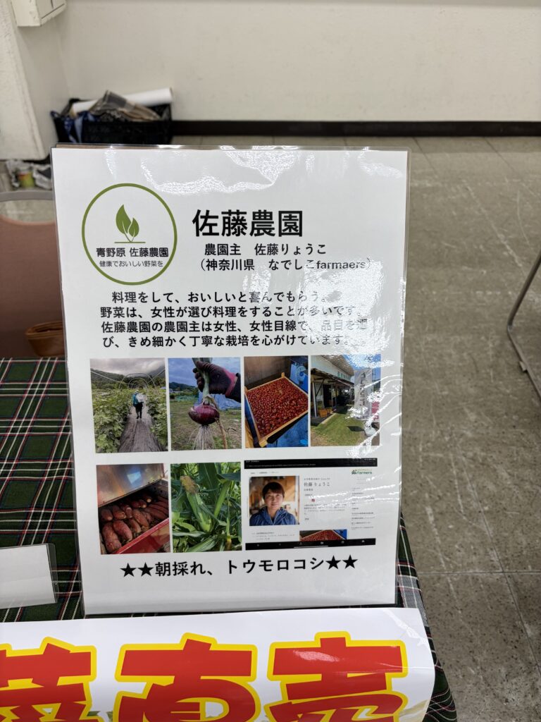 湘南台の手の駅でスーパーを開店させて地元野菜の販売に力を入れている。