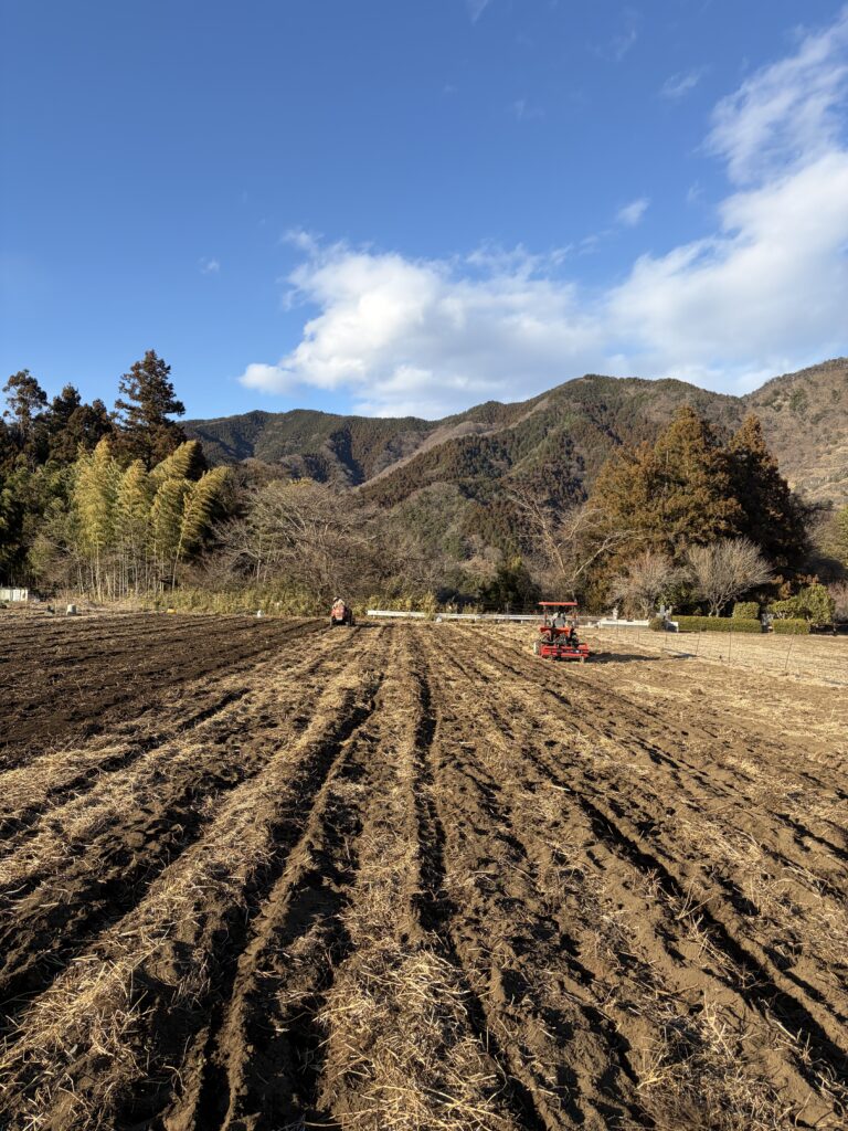 農作業日誌 ダブルトラクター 20260123 2026年1月24日 2026年1月24日 bunsen@bunsen 1つの畑に2台のトラクターで珍しい光景です。来季中山さんとさつまいも共同生産の予定地で、マルチはがしが完了して、Ryoko社長がフレールモアで草を最終粉砕して、中山さんが追っかけ耕耘している様子です。1人よりは2人が圧倒的に効率的ですが、もう一人となるといきなり余分。誰が余分かというと写真を撮ってる人だと思います。 Facebook postはてブLINEPocketFeedly