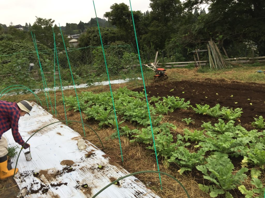 盛況だった、マクワウリ、かぼちゃ。地味ながらがんばったトマトの畝を片付けて、秋冬用のダイコン、白菜、カブ、レタス、ブロッコリー、春菊、にんじんに作付けがシフトします。