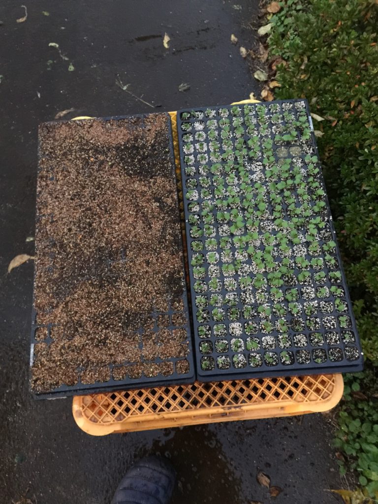 チンゲンサイとのらぼう菜の育苗中です。春菊、小松菜、ほうれん草の収穫後に植えます。