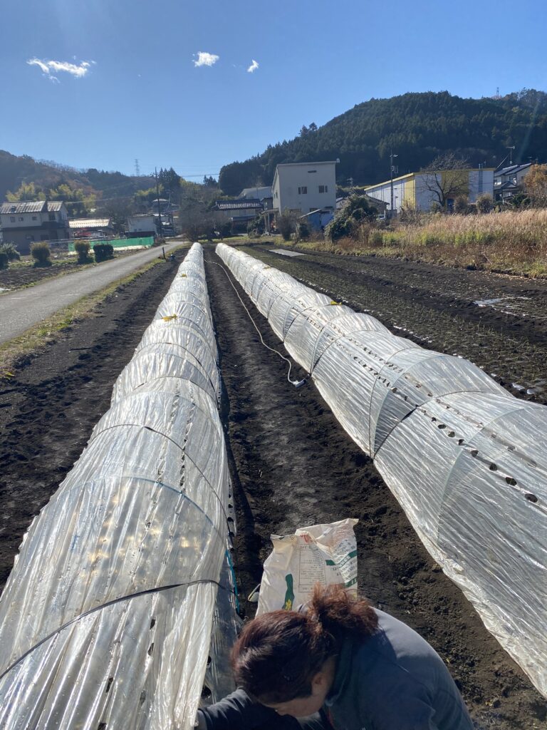 農作業日誌 玉ねぎの布団 20251206 玉ねぎさんたちは11月から12月にかけて定植しますが、定食してから1月後に追肥と併せて雑草取り、そして牛糞堆肥を被せます。早生の品種には穴あきのビニールトンネルをしますよ。たのしみー。 極寒で地面に霜柱が立つと玉ねぎの根っこを持ち上げられちゃうから牛糞のお布団を着せるのー。それと牛糞でね、土が柔らかくなるの.ワクワク。... 2025年12月7日 bunsen@bunsen